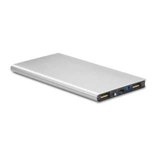 Power bank 8000 mAh z aluminium. Odpowiedni do ładowania smartfona, dane prądu wyjściowego DC5V/1A i DC5V/2A. Zawiera diodę wskazującą i kabel USB z wtyczką micro USB.